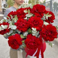 Состав: ажурная роза Хартс - 11 шт, эвкалипт - 10 шт, коробка, оазис - 1 шт