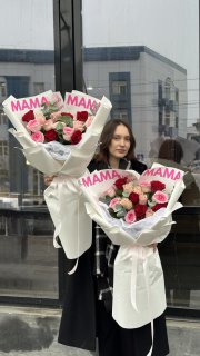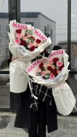 Состав: роза микс длины 50 см -15 или 25 шт, эвкалипт - 2 веточки. стильная упаковка с буквами "Мама"