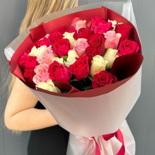 Состав: роза кенийская микс - 35 шт, упаковка