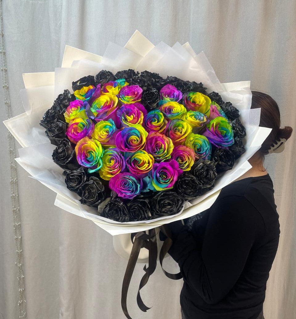 Состав: 51 крашеная роза длины 60 см двух расцветок