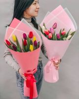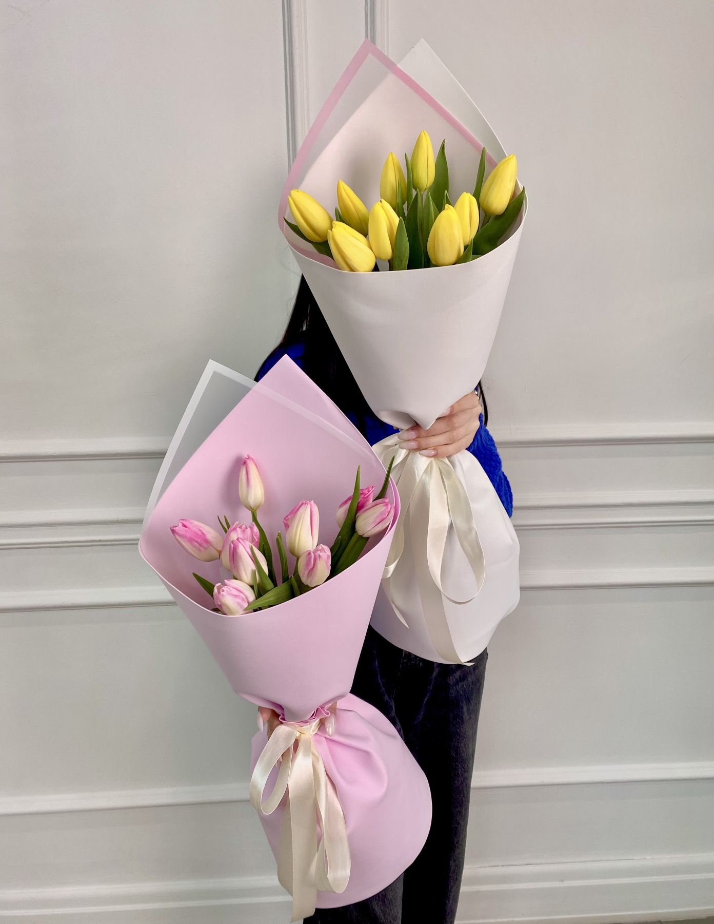 Цвет упаковки подбирается к цветовой гамме тюльпанов и может отличаться от представленной на фото.