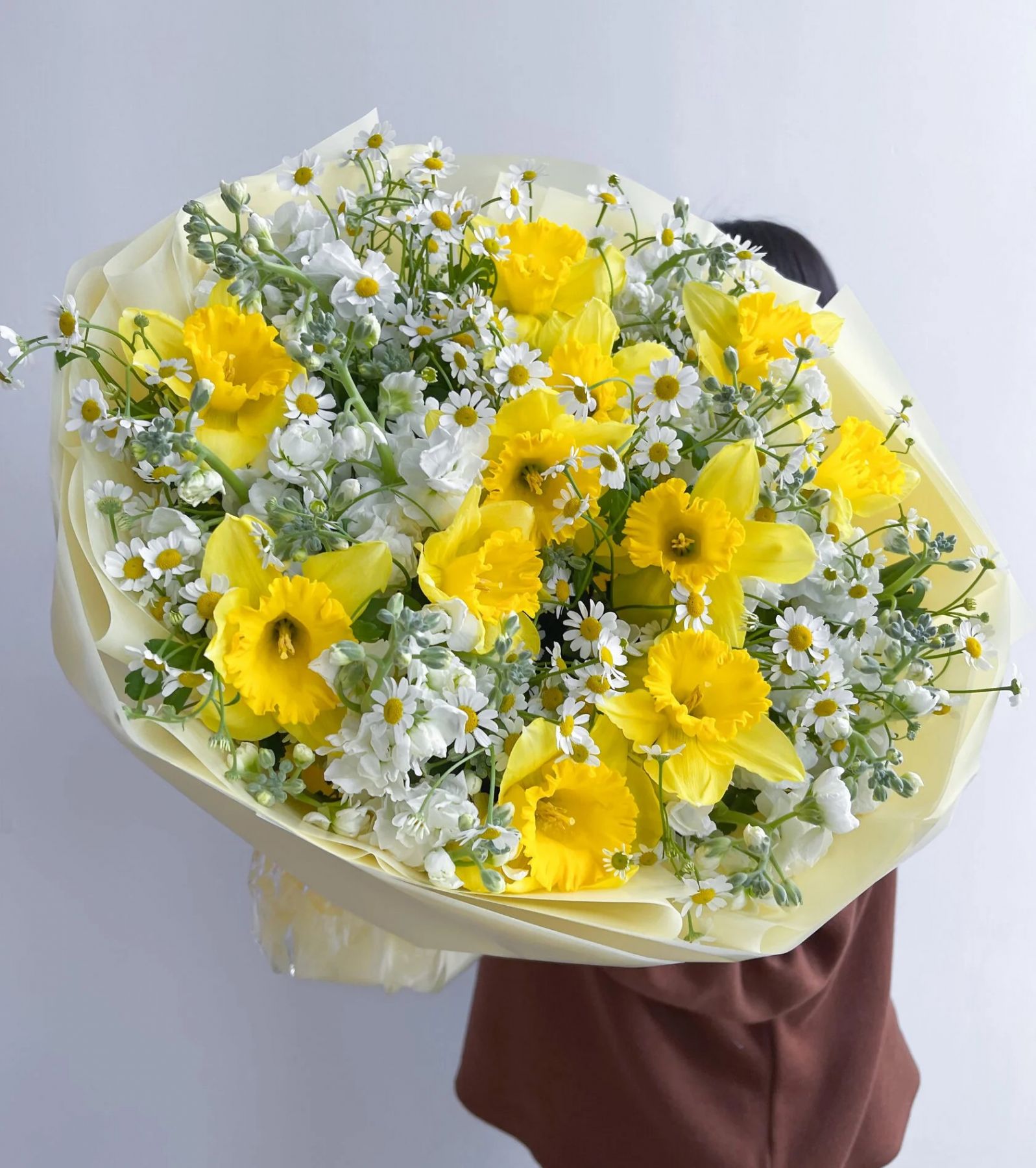 Состав: нарцисс - 11 шт, маттиола кустовая - 5 шт, татацетум - 15 шт, упаковка
