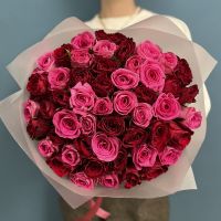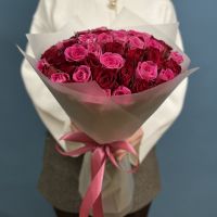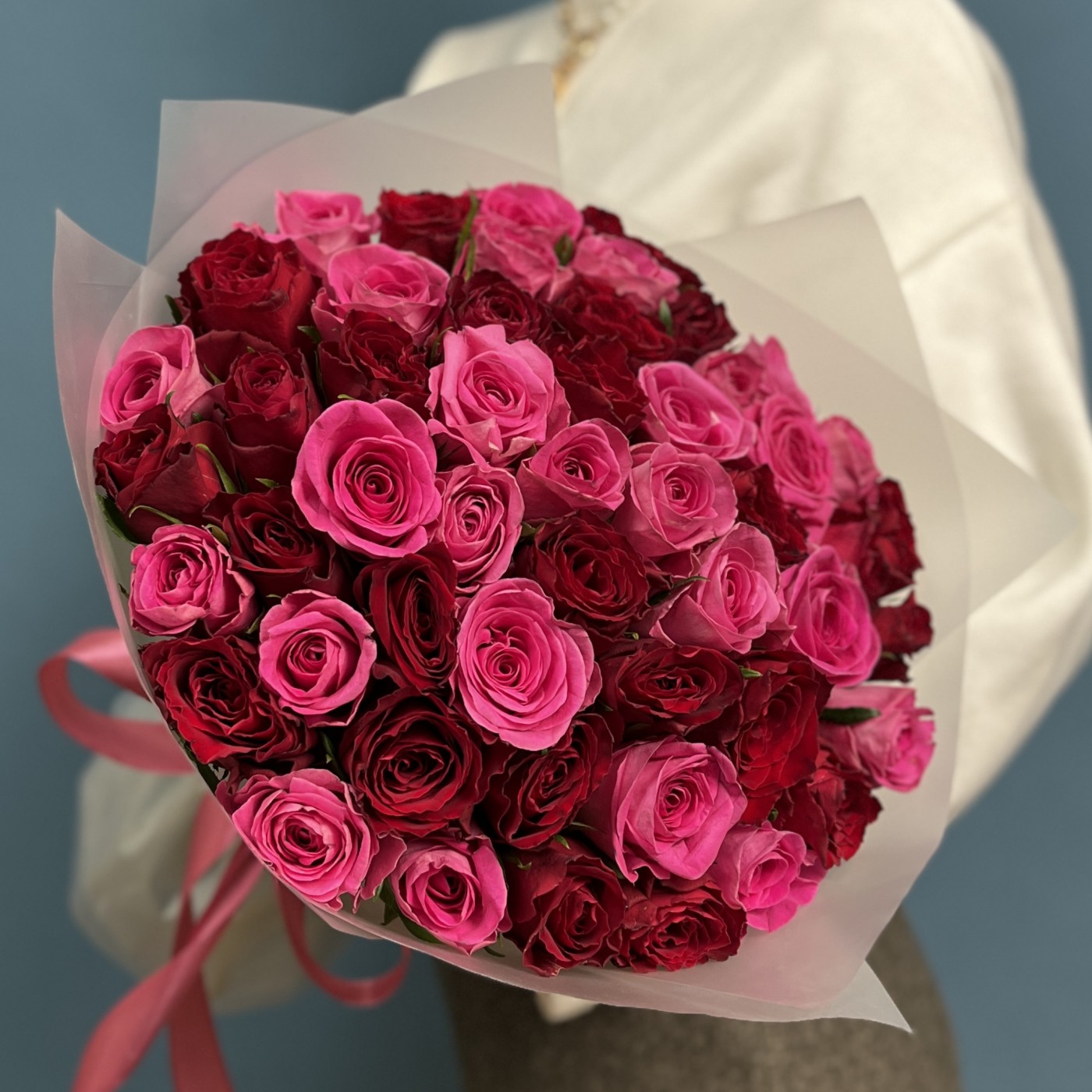 2- букет из 51 розы длины 40 см в упаковке + ваза