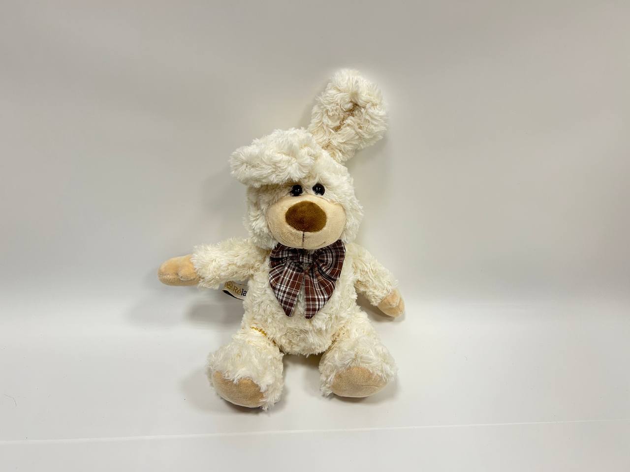 Игрушка мягконабивная Зайчик белый с коричневым бантиком в клетку, 20 см, в/п 20*20*15 см