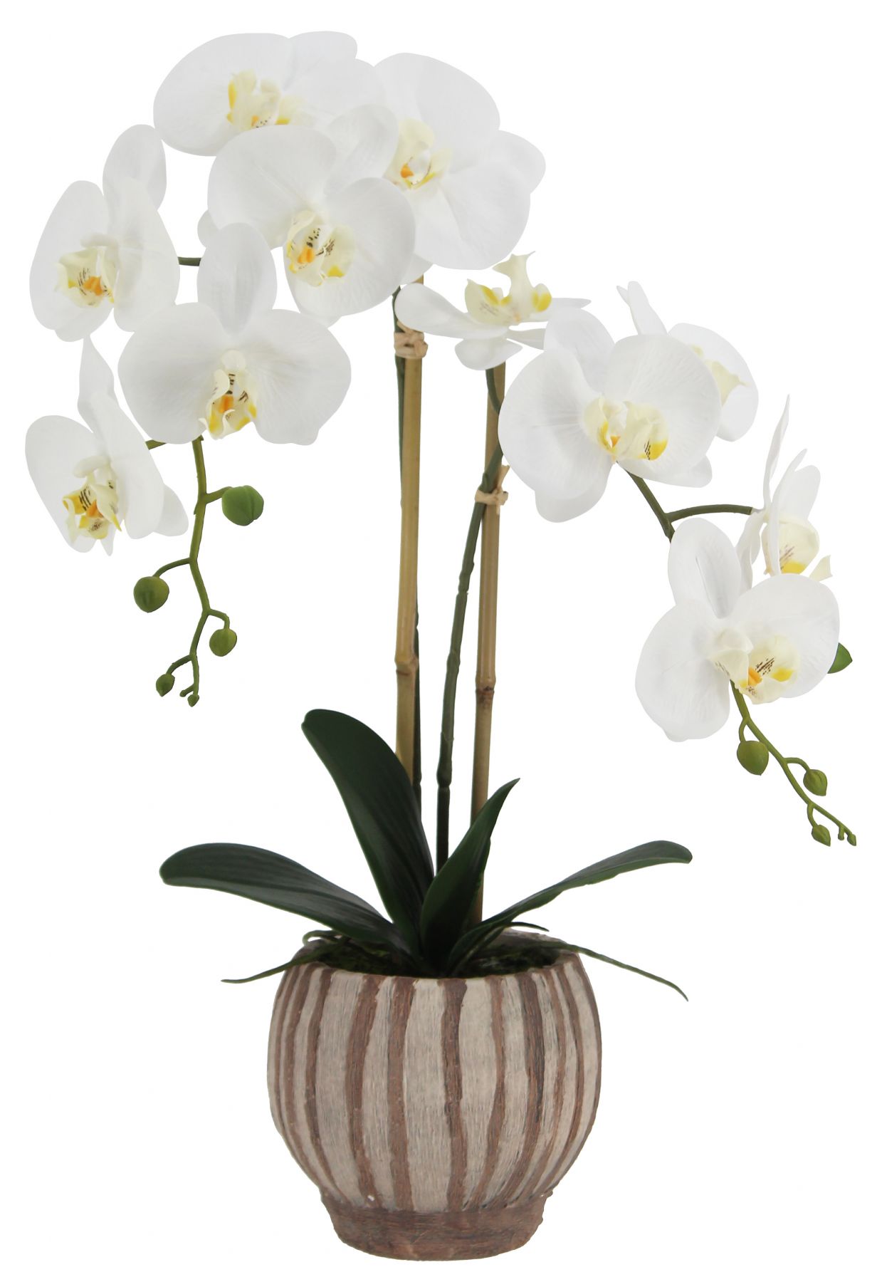 Искусственная орхидея в цементном горшке, высота 56 см, цвет белый, количество соцветий 2