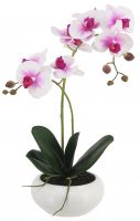 Искусственная орхидея в керамическом горшке, высота 43 см, цвет фуксия-белый, количество соцветий 2