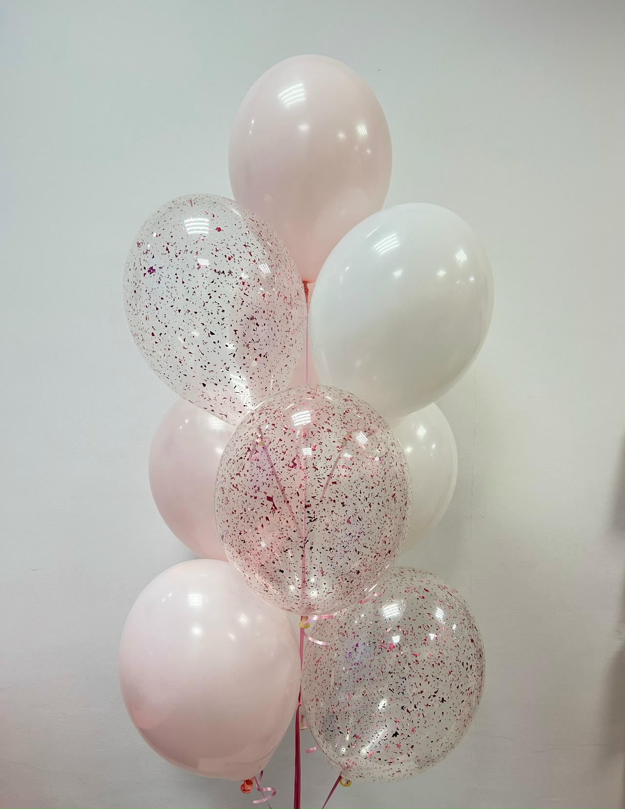 - фонтан из 10 шаров: 7 однотонных латексных шаров, 3 шара с наполнением;