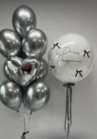 - 1 «стеклянный» шар Баблс 65 см с вашей индивидуальной надписью, с бантиками из атласной ленты;