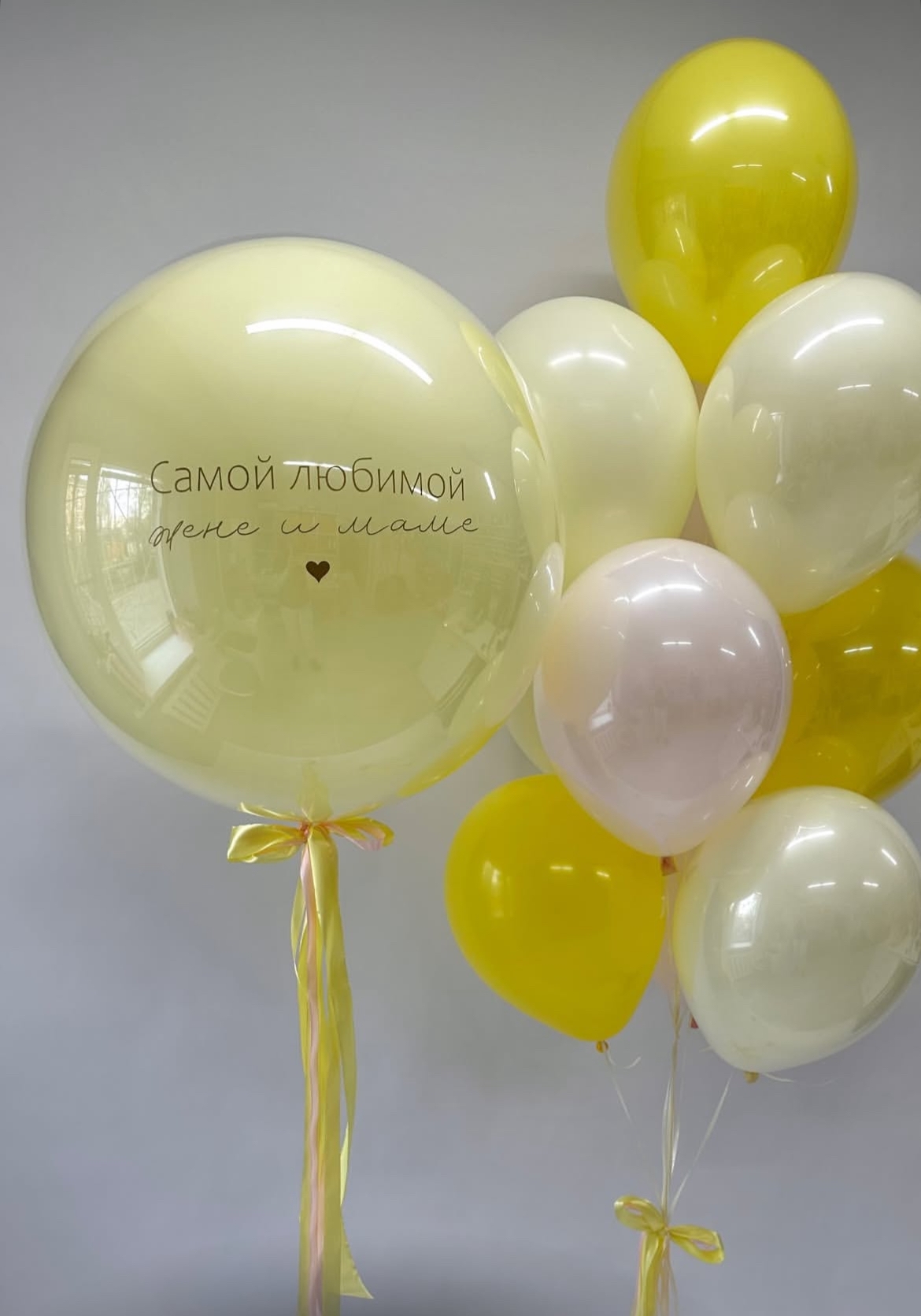 - 1 «стеклянный» шар Баблс 65 см с вашей индивидуальной надписью;