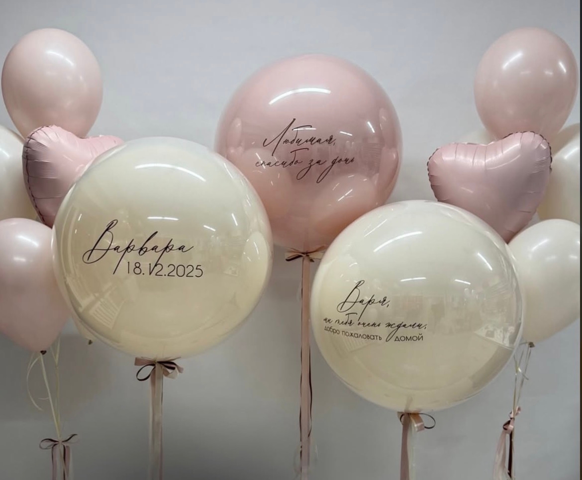 - 3 «стеклянных» шара Баблс 65 см с вашими индивидуальными надписями;