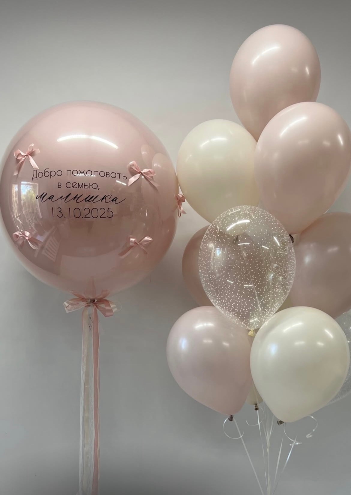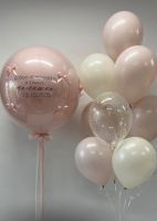 - 1 «стеклянный» шар Баблс 65 см с вашей индивидуальной надписью, с бантиками;