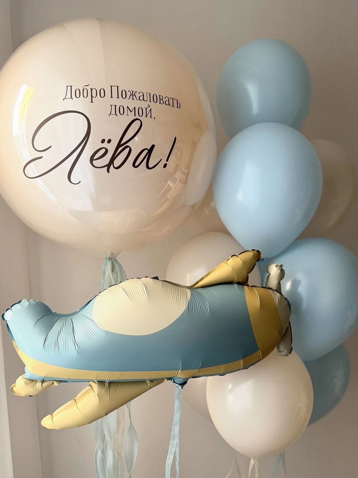 Цвет шаров, цвет ленты, фигура, надпись на шар, количество - заменяемы, согласовываются при заказе.