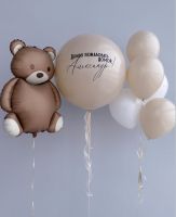 Цвет шаров, цвет ленты, фигура, надпись на шар, количество - заменяемы, согласовываются при заказе.