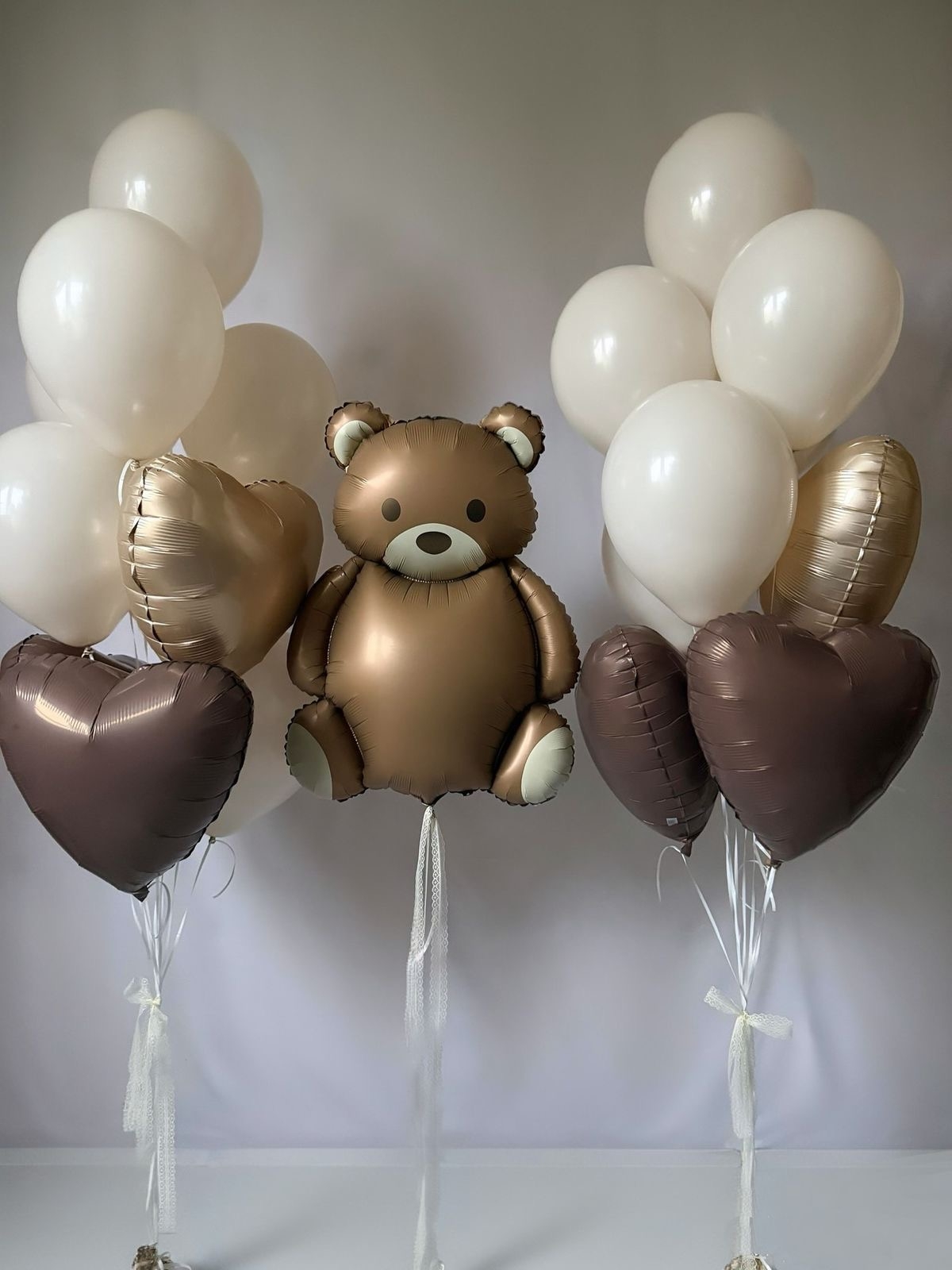 - 2 фонтана из 20 шаров: 6 фольгированных сердец 45 см, 14 однотонных латексных шаров;