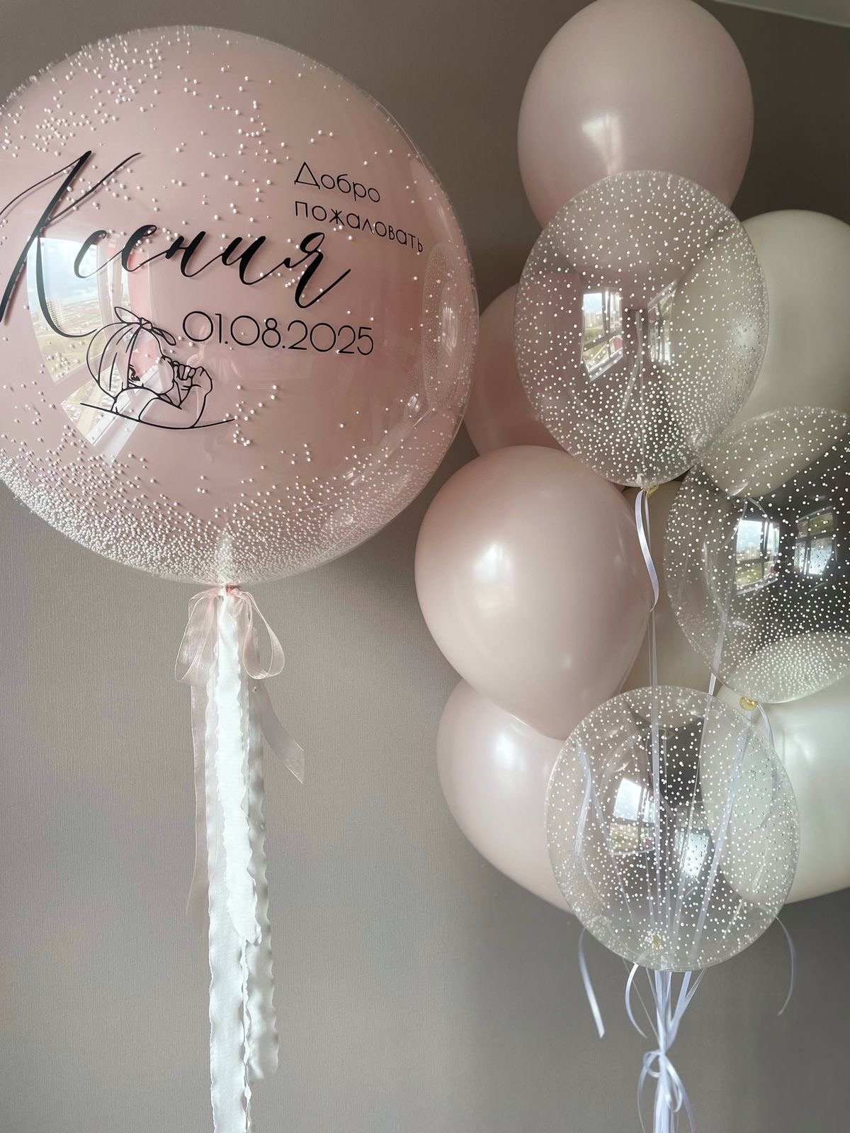 - 1 «стеклянный» шар Баблс 65 см с вашей индивидуальной надписью и пенопластовыми шариками;