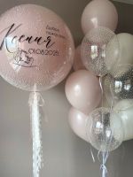 Цвет шаров, цвет ленты, надпись на шар, количество - заменяемы, согласовываются при заказе.