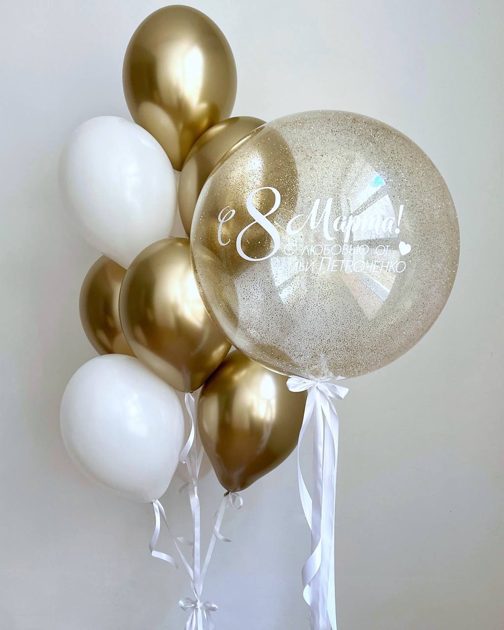- 1 прозрачный шар бабблс 24" с наполнением конфетти, с индивидуальной надписью;