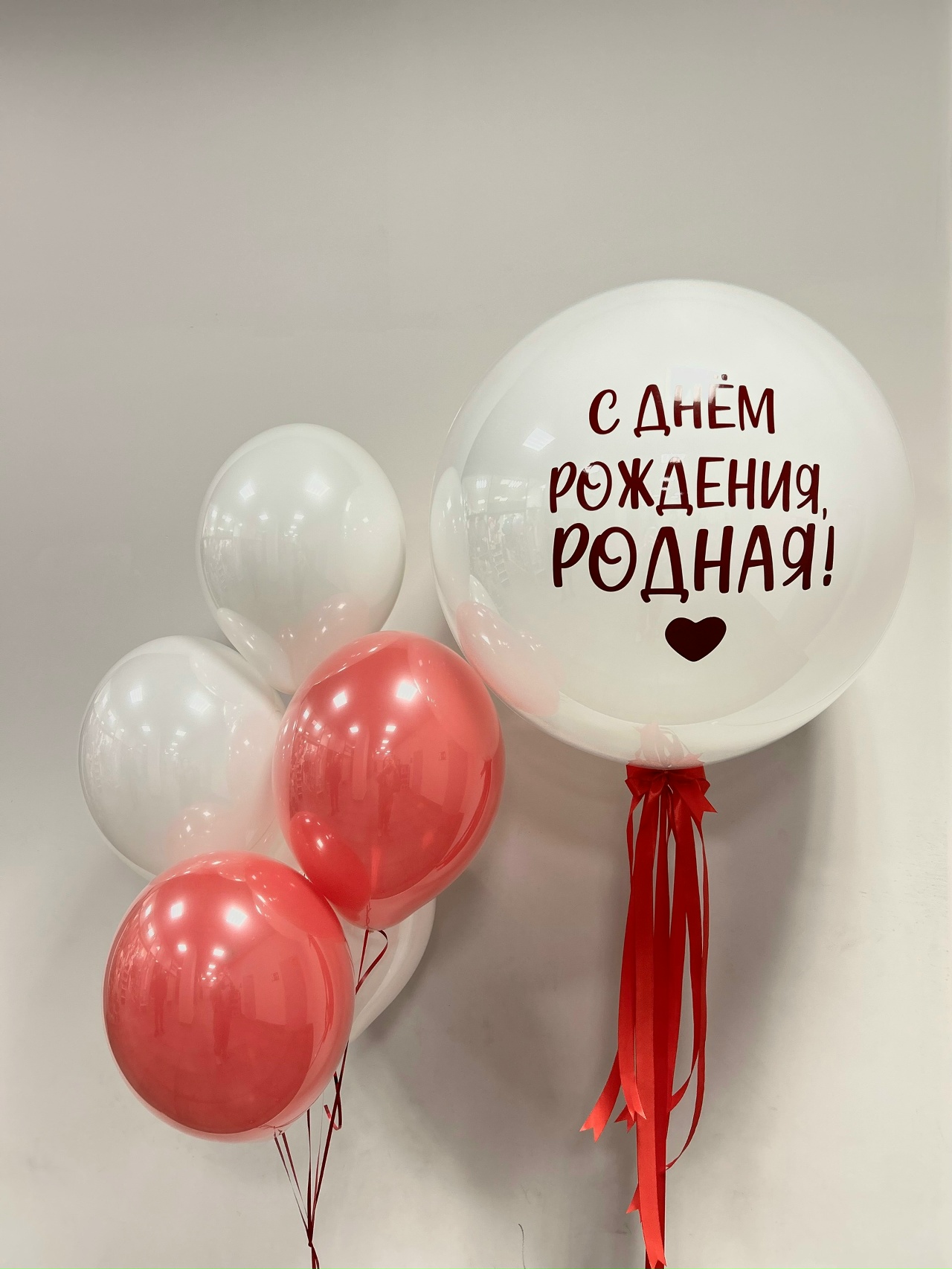 Цвет шаров, цвет ленты, надпись на шар - заменяемы, согласовываются при заказе.