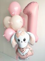Цвет шаров, цвет ленты, цифра, фигура - заменяемы, согласовываются при заказе.