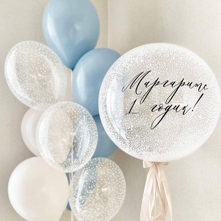 - 1 шар Баблс 55 см с наполнением и индивидуальной надписью;