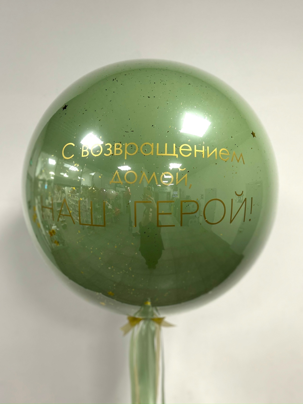 - 1 «стеклянный» шар Баблс 65 см с индивидуальной надписью;