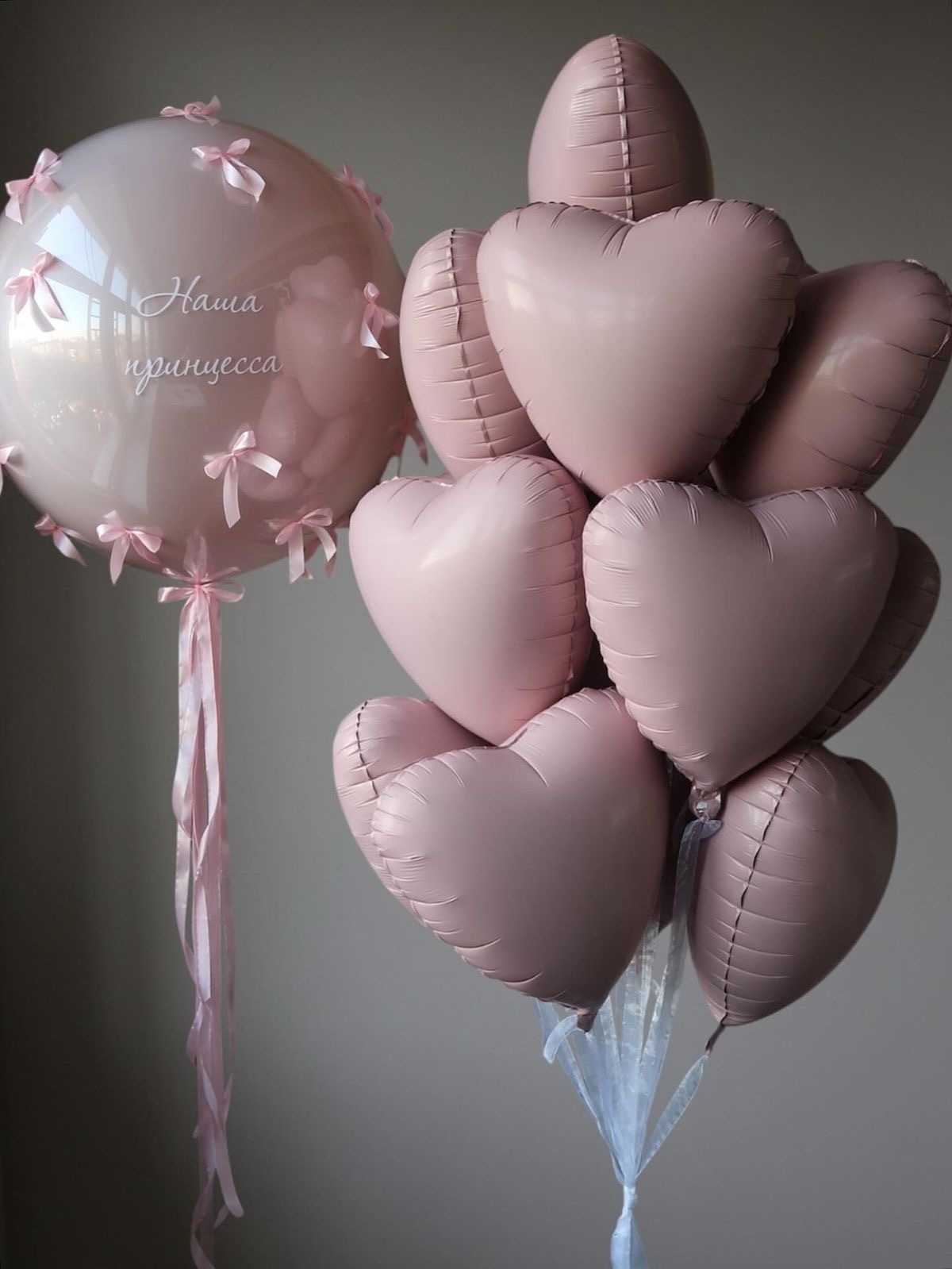 - фонтан из 13 фольгированных сердец 45 см на атласной ленте;