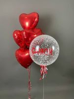 - 1 прозрачный шар Баблс 45 см с наполнением и вашей индивидуальной надписью;