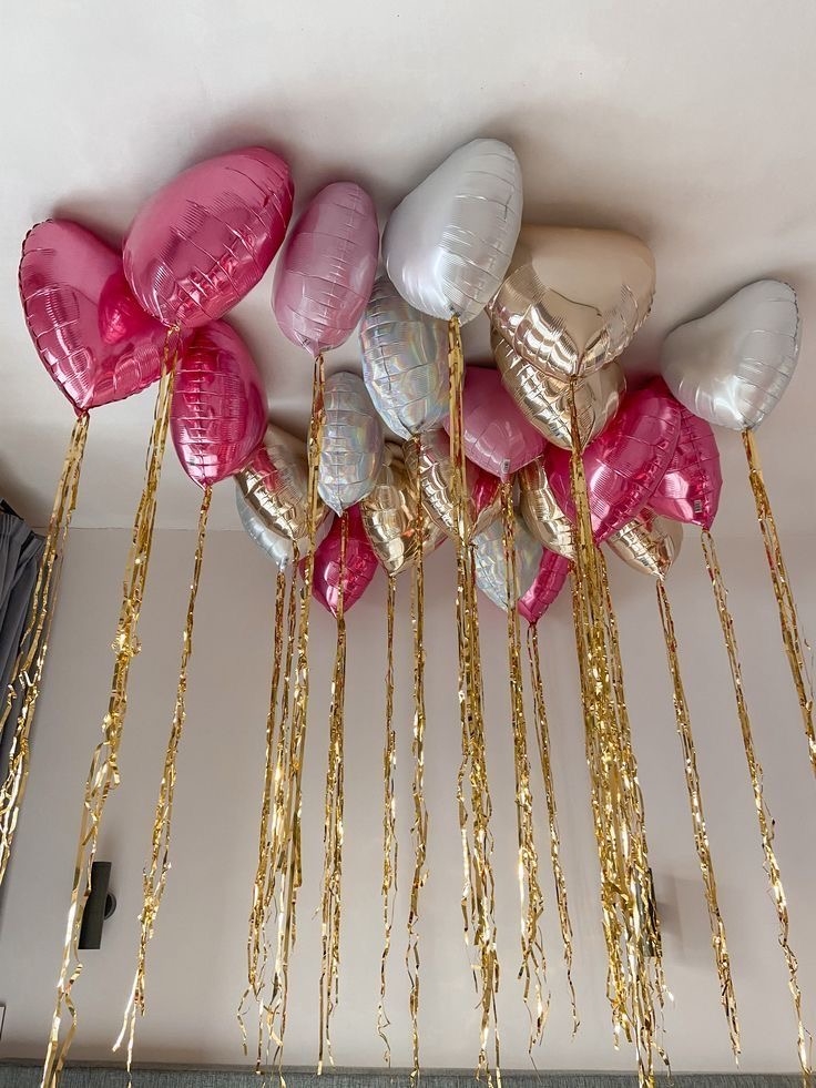 - 22 фольгированных сердца 45 см под потолок, на дождике;