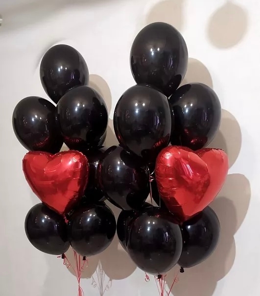 - 2 фонтана из 18 однотонных латексных шаров и 2 фольгированных сердец 45 см;