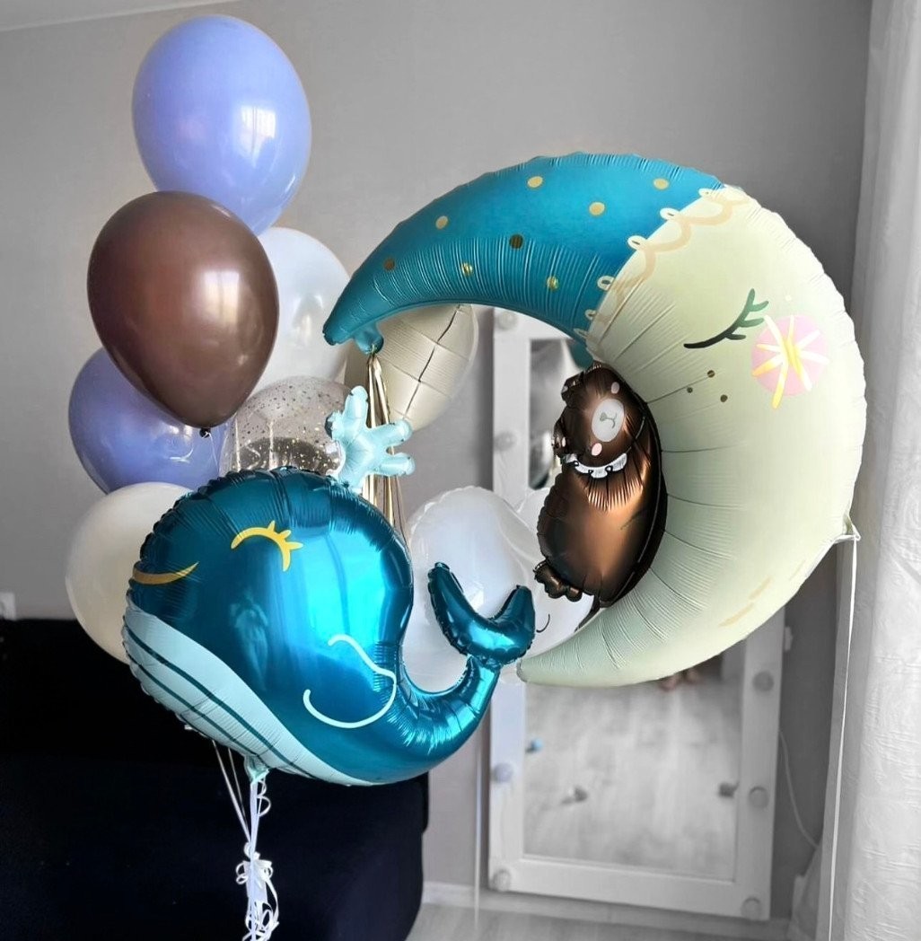 Композиция из воздушных шаров с гелием «Медвежонок на луне и Китёнок» — прекрасный способ выразить свою заботу и любовь и сделать приятный сюрприз ребенку. Этот аксессуар идеально впишется в детскую вечеринку или семейное празднование дня рождения, придавая неповторимый шарм.