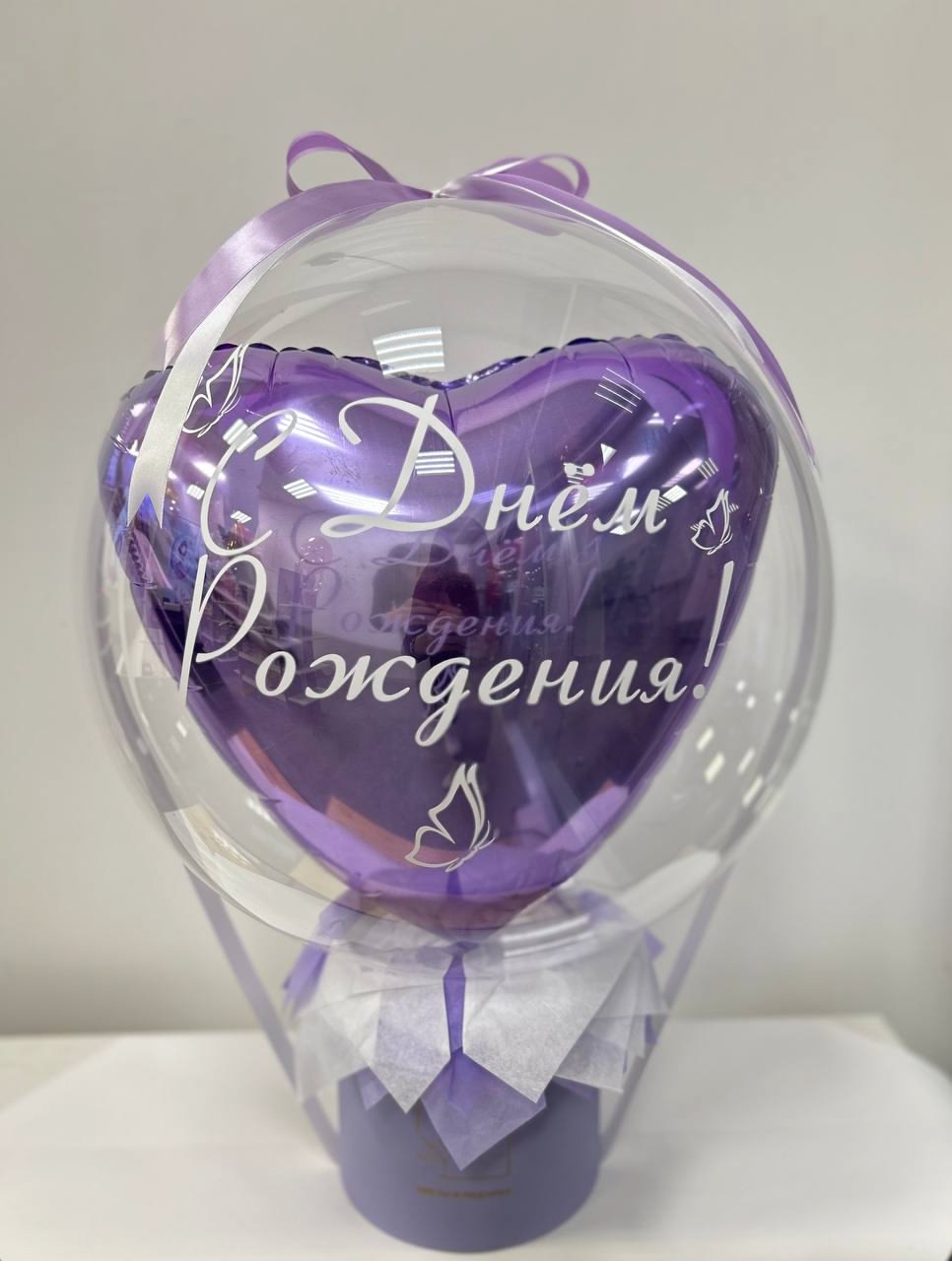 шар баблс 24"-55см, шар фольга сердце, коробка, тишью, ленты.