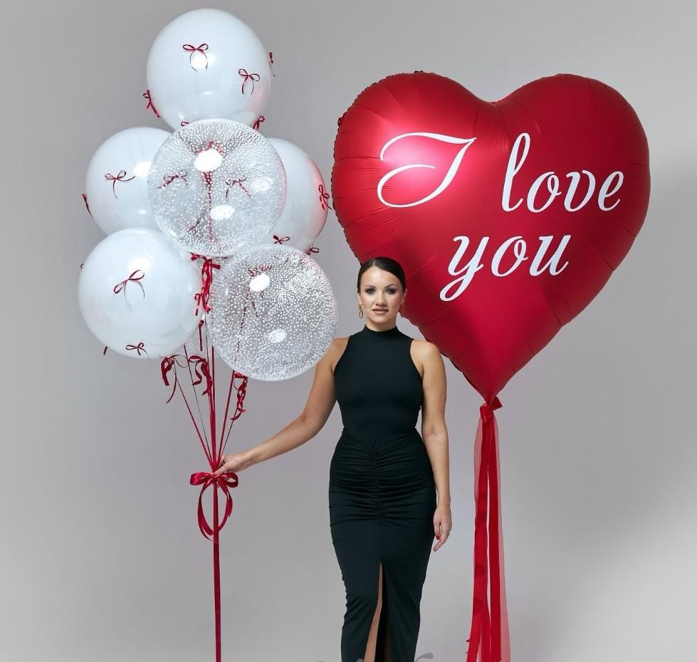 Сет из воздушных шаров «С любовью» — это романтичное и элегантное украшение, созданное для самых тёплых признаний и важных моментов. Главным акцентом набора является большое фольгированное сердце насыщенного красного цвета с надписью «I love you», которое выражает искренние чувства и создаёт атмосферу любви и нежности. Композицию дополняет связка из 7 шаров: белые шары дабл стафф с милыми красными бантиками и прозрачные шары с конфетти, которые добавляют лёгкости и игривости.
