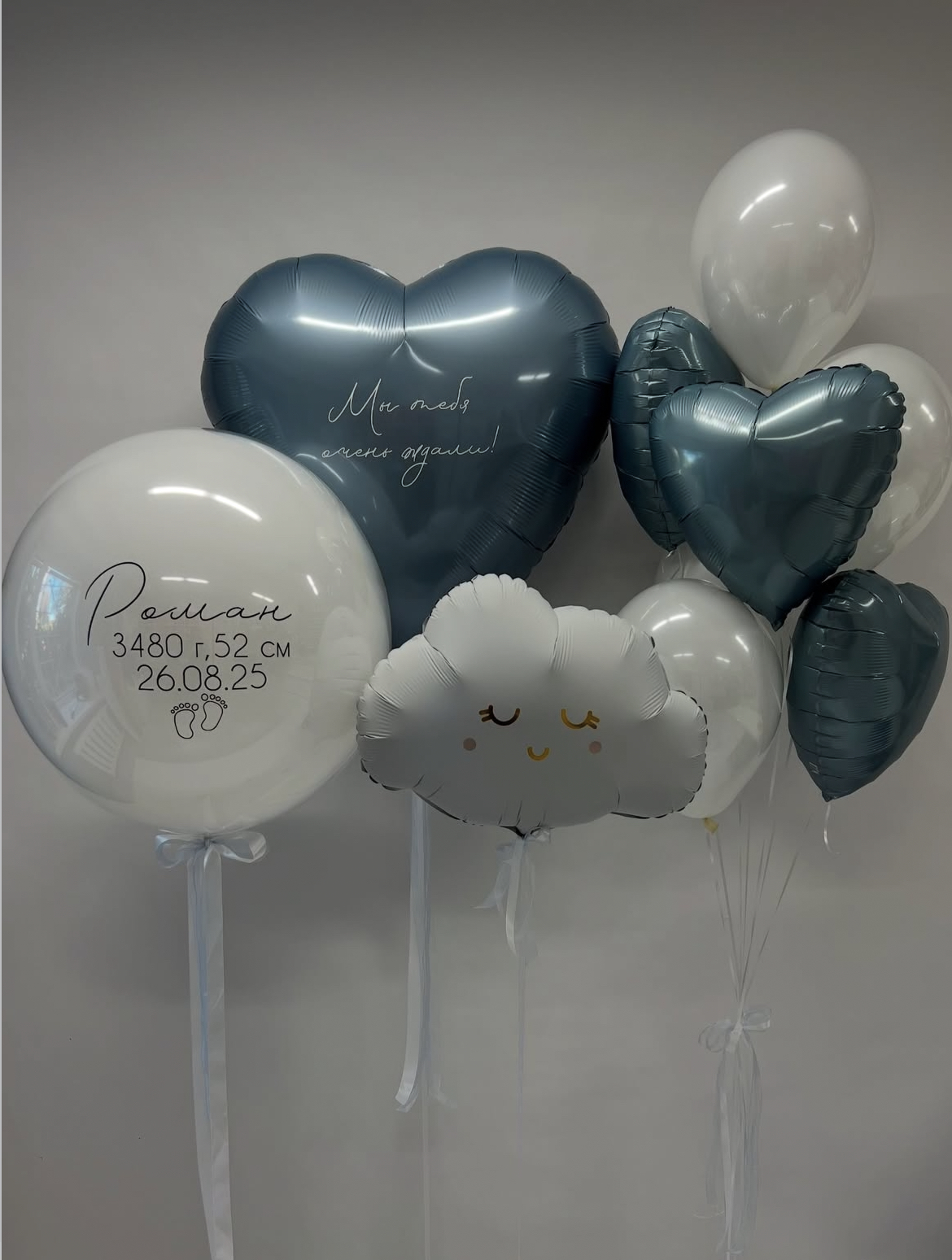 - 1 фольгированное сердце 75 см с вашей индивидуальной надписью;
