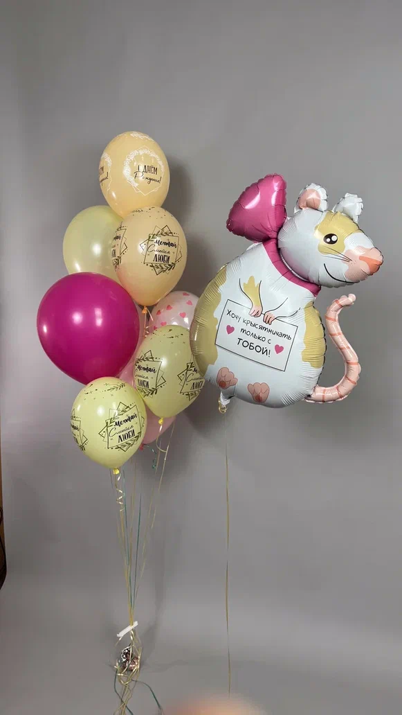 Состав: фигура фольга крыса - 1 шт, шар латекс - 9 шт, грузик - 2 шт