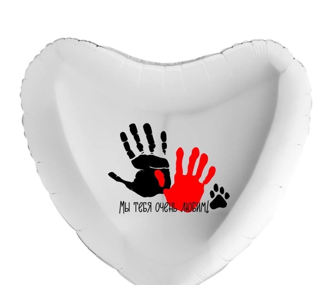 Шар сердце 32" со сложной наклейкой "Мы тебя очень любим"