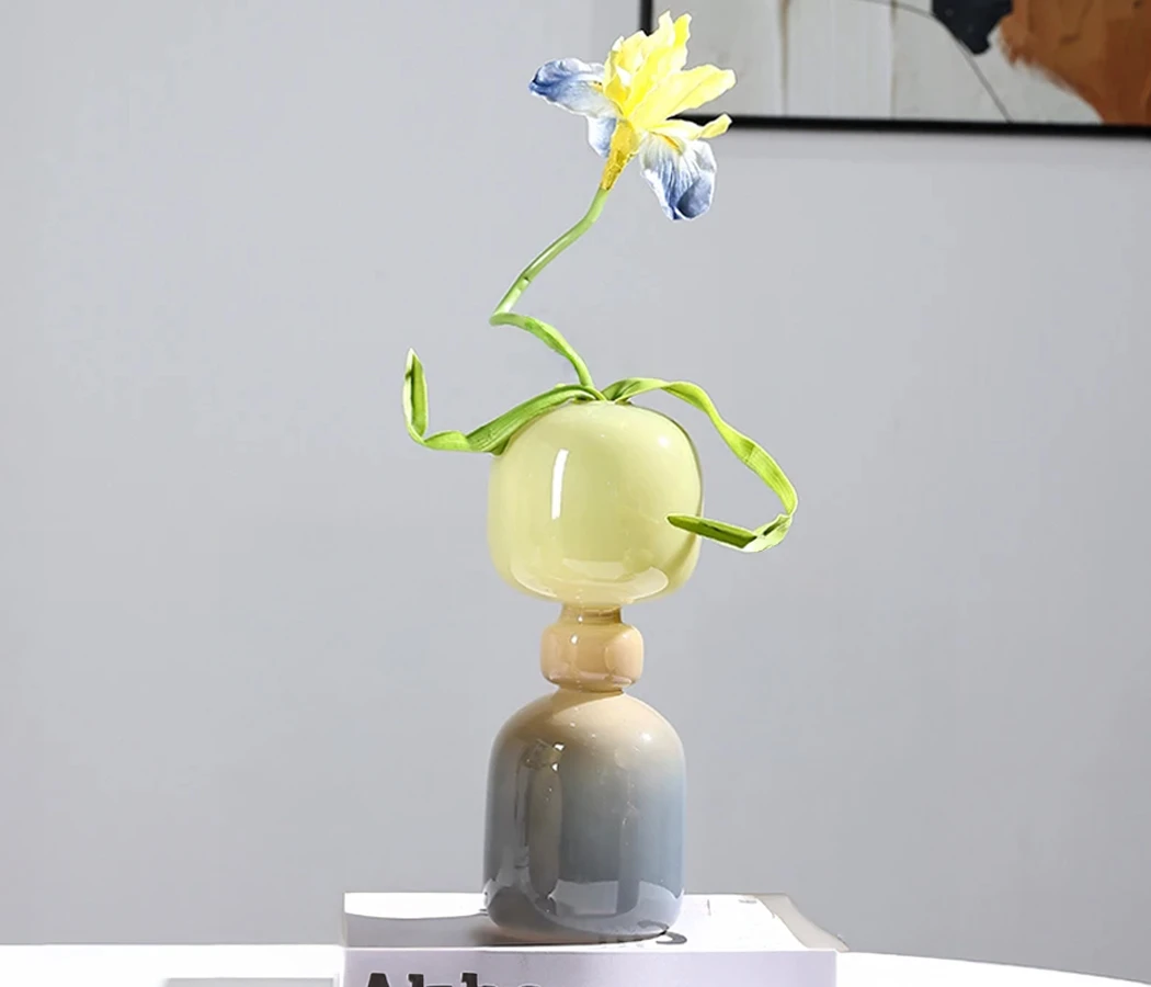 Ваза стеклянная D10 * H25 см, 1 шт., градиент серый/лимонный/зеленый